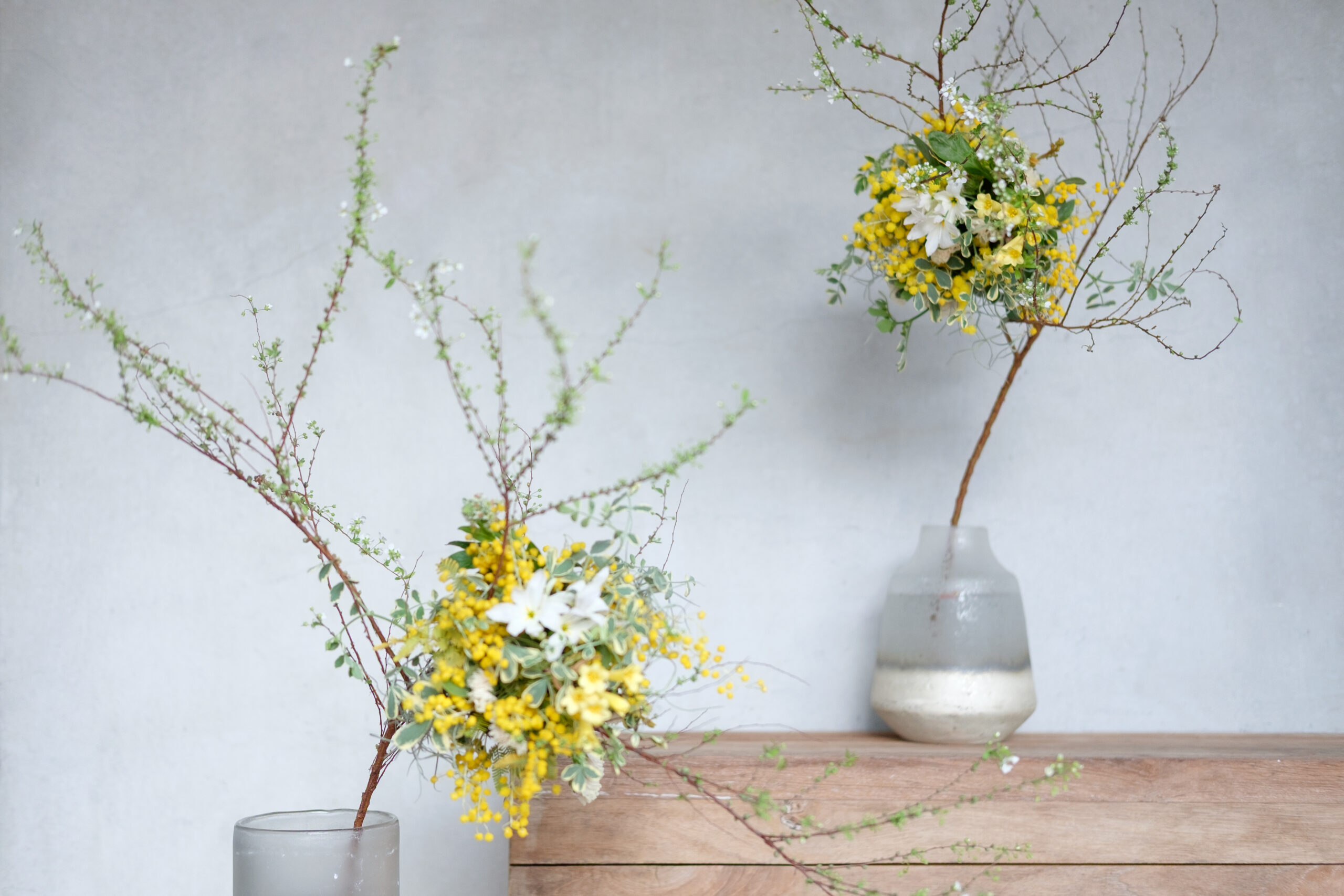 2月の旬・ミモザを使ったボールアレンジメントを作ってみませんか?対面レッスンのご都合がつかない方にもお楽しみいただいています。